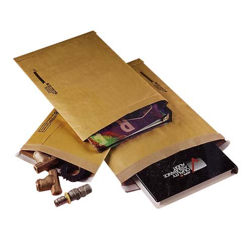 Padded mailers are made of heavy-duty satin gold kraft material with uniform inner batting for rugged all-purpose protection. Each mailer has a regular open-end design. Mailers contain 90 percent recycled paper fibers with 50 percent post-consumer materi Read more...